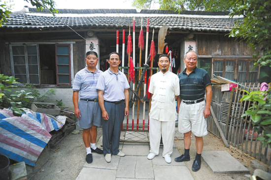我馆馆长牛和厚先生在演示“大鹏展翅”  牛官堡许多村民家中都有刀剑架 前一段日子,甘肃卫生界的“打通任督二脉”事件闹得沸沸扬扬,这“任督二脉”真可以轻松打通吗? 记者决定到巢湖边长临河镇一个村庄走一遭探个究竟。这个村庄叫星二村,在新中国成立前有一个更响亮的名字——牛官堡。为何要到这个村庄探究竟呢?因为这里曾是合肥地区大名鼎鼎的武术之乡。清末民初,这里出过武术大家牛瀚章、江淮大侠牛洪川等不少燕子李三式的侠客。轻功、气功、拳术等一直是这里的绝活。然而无论轻功、气功都需要运气丹田,这让人联想到传说中的打通“任督二脉”。至今,这里的武术依旧在代代相传…… 普通村民家 摆着刀剑架 沿着肥东到中庙的撮镇路一直向南,就到了长临河镇。紧跟着拐进一个村庄,村口的牌子显示这里就是“星二村”。 来到村中,沿路遇到一个骑摩托车的男子,当记者聊起这个村子的武术传统后,这名男子便邀记者到他家中。男子叫牛涛,今年46岁,是一名数学老师。记者看到,他的家中有一个类似健身房的房间,院子里还有哑铃等健身器材。最让人吃惊的是,他家中还摆放着一个刀剑架,上面挂满了刀、戟、枪、剑、钺、棍等武器。“现在练习少了,年轻的时候,经常练习。” 如果你在这个村庄里挨家探望,会惊奇地发现这个村庄的许多村民家中,都有一些练武的兵器。 据星二村的前任村支书牛进瑞介绍,星二村包括庙前牛、中份牛、井份牛、小郢牛等村民组,新中国成立前唤作“牛官堡”。牛官堡牛姓始祖大概是在明末清初前后逃难来到这里的。始祖名字已无从考证,只知道他有三个儿子牛官堡、牛照堡、牛关堡。而其中大儿子牛官堡就一直留在了这里,所以牛官堡既是一个村庄,也是一个先祖的名字。 愤懑投少林 牛门有洪拳 牛中环是现任的村支书,她和人说话总是笑眯眯的。 不过你可别以为这个女书记好欺负,她也是出生在武术世家,也曾刻苦习武。“小时候经常练习,现在已经不练啦!这牛官堡的武术虽然也传女,但是高手多是男子呀!”牛中环说。 牛中环小时候的武功是牛进瑞教的,而牛进瑞的武功是其父亲牛善平教的,牛善平的师傅则是名震江湖的牛洪川。而牛洪川的启蒙师傅则是他三叔——牛瀚章。 牛洪川,别人多称他江淮大侠,出生在清朝末期。大约在牛洪川十五岁那年,牛官堡遇大旱,村边有一口公用的大塘,但被有钱有势的人霸占。牛洪川的叔伯弟兄们商量决定前去抢水,不想被众多的地痞恶霸打得头破血流。牛洪川的三叔牛瀚章一气之下,投奔河南少林寺。数个春秋过去了,牛瀚章练就一身钢筋铁骨,并按照自身特点,融合大、小洪拳,自创了牛门洪拳。学成归家,牛瀚章帮着穷人对付那些恶霸地痞,名声越来越大。 江湖苦学艺 大侠名声扬 “牛洪川跟随其三叔学武后,又出去拜访全国武术高人,渐渐在江湖上崭露头角。”牛官堡的第四代传人牛和厚告诉记者。 宣统年间一个夏天,庐东地区遇到百年不遇的洪灾,许多人家破人亡。面对缺吃少穿的现实,牛洪川决定劫富济贫。他跑到巢湖柘皋一欺压百姓的恶霸家中,用麻袋装起所有的金银细软、玛瑙、珠宝,一口气返回牛官堡。唤了村上十多位后生,一早赶至庐州城,将所有掳来的财物兑换成大洋,购来了大米、油盐、棉被,雇人用板车运回牛官堡,分给各家各户。 合肥市民俗专家牛耘老家也在牛官堡,他告诉记者,牛洪川虽然武艺高强,但从不恃强凌弱,所以深受群众爱戴。 功夫有传人 代代生不息 牛洪川平生最看好的徒弟有三:牛善壁、牛善宽、牛进和。牛善壁的徒弟有牛进康、牛进一、牛进常、牛和炳等人。牛和炳曾任国家二级武术裁判。他们是第三代传人。而牛官堡第四代传人的杰出代表则是牛和厚、牛涛等人。 牛和厚今年已68岁,是一名退休语文老师。年轻时,他曾去上海等地拜访许多武术高人,精研武术,除了学习外家功夫外,又精习内家功。 关于打通任督二脉的问题,牛和厚告诉记者,“以我的个人体验来说,打通任督二脉需要长时间的刻苦练习,先要气沉丹田,然后能够气运全身,之后身体才会有更加特别的体验。”(杨婧、记者周晔/文、马杨/图