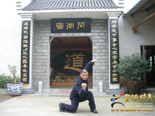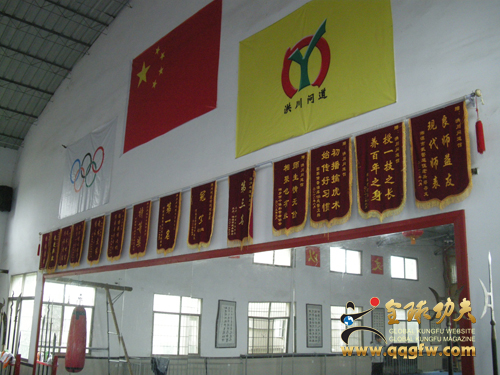 左起:汪邦明老师、牛和厚老师、本站记者 湘潭市洪川武馆坐落在湘潭新城的岳塘,是一座占地近四亩独院庄园式建筑,建筑设施有一座四层1000多平方的古典式徽派建筑格调楼房,作为洪川武馆和湘潭市武术协会的办公的场所,武术练功房是两层的建筑,一层是办武术培训可容纳近百学员的宿舍和食堂,二层是一座高七米近600多平方宽敞的练武大厅,院内有宽敞的长廊,各种名贵的景观树木和花草,还有名贵的巨大灵璧石、直径1.8M、高0.7M的石雕圆古殿,整个庭院设计十分温馨典雅,让来客感到身境古时神仙胜地。武馆的大门楼高挑宽大、徽派建筑的格调、两扇高大古式大门,大门口两边有两座高大的石狮看门,让来客还没进门就已陶醉在这古典建筑的魅力之中。这样的建设工程在大单位里是不在话下,这难以想象的是私家牛和厚老师和儿子耗尽5年时间,精心的组织雕注而建成的。这是什么精神支撑着牛和厚老师,就是为了弘扬传承祖师江淮大侠牛洪川先生的“牛门洪拳”在他第四代不给失传,这种忠诚不渝的精神所注的心血,将永远记载在中国牛官堡武术传承的史册。