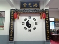 洪川武馆问道馆记 洪川武馆(问道馆)是湘潭市 唯一一家园林式武术馆。位于牛庄 之南侧,中式门楼下“问道馆”三 个鎏金大字赫然醒目。大门两旁亦 有一幅馆长专为本馆题书的对联, 上联是“问学天下苦心求索集古今 雨露”;下联为“道法自然极力运 化汇春秋烟霞”。 进门就是训练大厅,门内玄关 处是一硕大的镂金隶书“道”字。 进得门内便是宽敞明亮的练功大 厅。迎面山墙上是一排宽十米、高 二米的练功明镜,宝镜上方正中悬 挂着一面巨幅国旗,左边是“五环旗”,右边是“馆徽”。镜子两边各有 一排兵器架,架上刀、枪、剑、戟、斧、