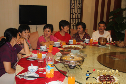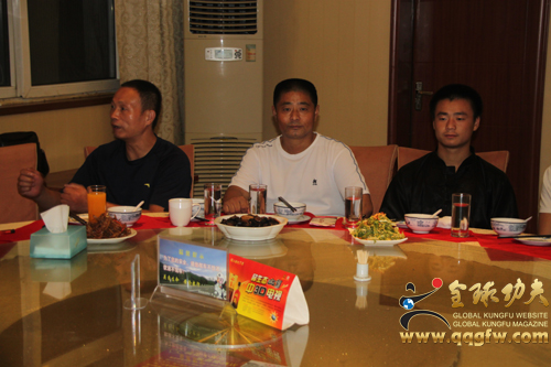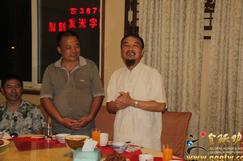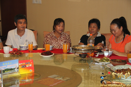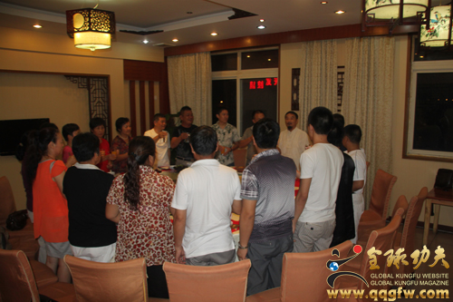 全球功夫网安徽站讯 8月29日晚上,在合肥聚鑫楼大酒店聚会了来自湖南省湘潭市洪川问道馆的馆长、牛官堡传统武术第四代传人、大洪拳嫡传武术家牛和厚老先生夫妇,合肥邦明装饰工程有限公司总经理、武当纯阳拳第二十四代非物质文化遗产传人汪邦明老师及武当纯阳拳习练传播者儿子汪城,黄山太极拳协会会长杨世强老师一起随行的黄山徽州区太极拳协会胡秘书长及五位太极拳爱好者,前来赶到聚会的安徽暖洋洋太极文化有限公司董事长凌光先生和暖洋洋太极养生馆馆长刘明周老师,以及牛和厚老先生的亲朋好友、武术爱好者李长浩师傅等武林朋友。