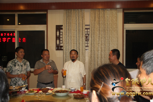 聚会的宴席中,宾主们频频举杯,相互敬酒,畅谈武术发展的未来,在场的黄山太极拳协会会长杨世强老师及同行和暖洋洋太极养生馆馆长刘明周老师宴席间即兴表演了陈式太极拳、赵堡太极拳和心意六合拳。聚会的武林同仁在一起尽情的交流,共同分享了武术精华展示的乐趣,武林朋友的聚会,令人难以忘怀。